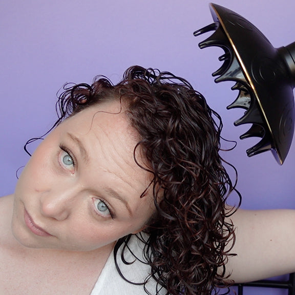 Great for wavy hair. Makes curl pattern tighter and bouncier. Cup your hair into the diffuser bowl and hold for a couple of seconds close to your scalp. Continue in sections until the whole head is dry.